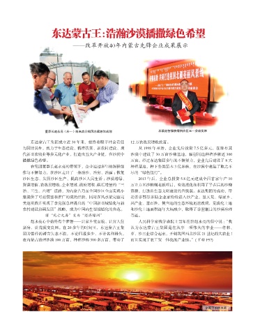 在内蒙古治理沙漠 100 万亩,种植沙柳 300 多万亩,带动了 而且实现了农工贸一体化的产业链。”( 下转 P57)