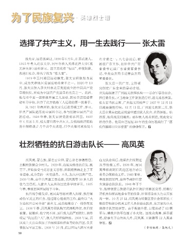 的活动。1924 年春,张太雷按党的要求回国。1927 终前,他向战友们嘱托:要和敌人战斗到底,完成党交