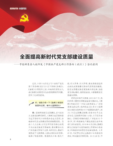 《条例》公开发布之际,中央组织部负责人 把党支部建设放在更加突出的位置,加强