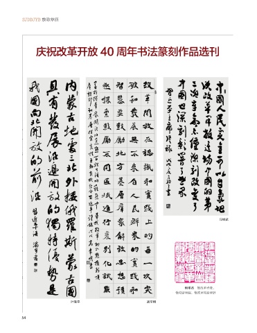 SJDDJYB 放歌草原 庆祝改革开放 40 周年书法篆刻作品选刊 马继武 侯希杰 惟改革者进, 惟创新者强,惟改革创新者胜 叶满宇 高常明 54