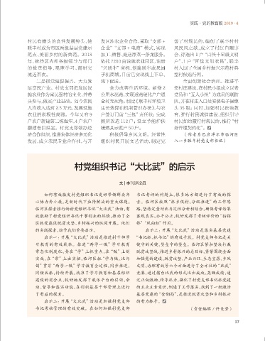 启示二:开展“大比武”活动是加强村党支部 的有力抓手。■