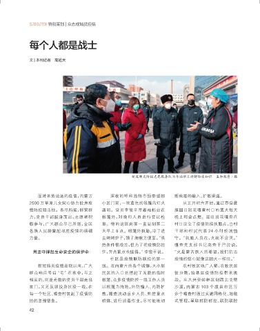 各族人民凝聚起战胜疫情的磅礴 天早上 8 点。帐篷外执勤,冷了进 干部和村民代表 24 小时轮流值