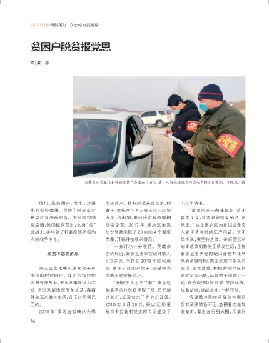 动,平时只能做些简单农活,靠着 依靠党的扶贫政策脱了贫,日子越 执勤站岗,逢战必先,一样不落。