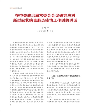 状病毒肺炎疫情防控工作提出了要求。1 月 20 日, 强疫情防控工作的局面。在党中央集中统一领导