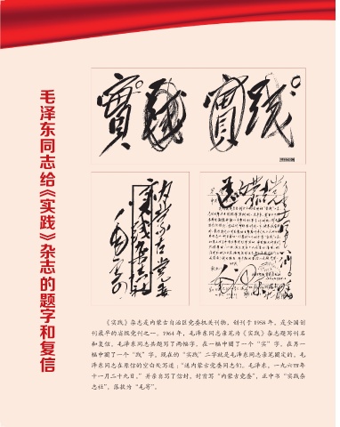 幅中圈了一个“践”字。现在的“实践”二字就是毛泽东同志亲笔圈定的。毛