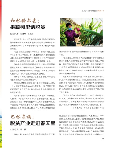 “我来绿野打工已经 6 个年头了,不仅脱了贫,还买 由公司经营,每年向村委会缴纳租金 12 万元,6 年结算