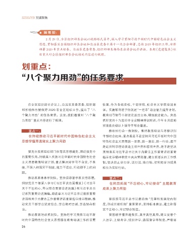 个聚力用劲”的任务要求。这里,我们着重对“八个聚 教育引导领导干部坚定政治立场、增强政治能力。突出