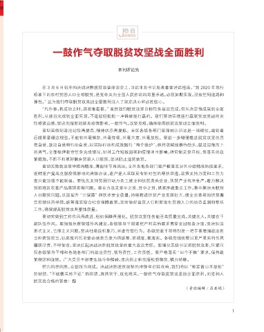 任感紧迫感,坚决克服新冠肺炎疫情影响,一鼓作气,攻坚克难,确保取得脱贫攻坚战全面胜利。