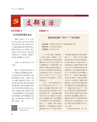 进一步发挥党组织和党员在疫 整洁很关键。临时党支部组成人