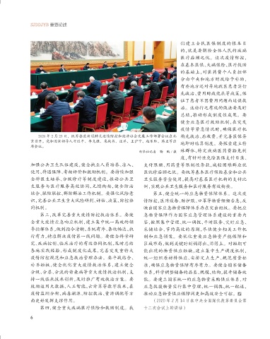 2020 年 2 月 23 日,统筹推进新冠肺炎疫情防控和经济社会发展工作部署会议在北 构先救治、后收费,并完善医保异