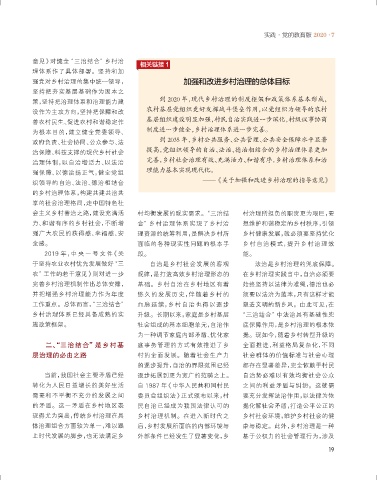 施政策框架。                             社会组成的基本细胞单元,自治作                    底保障作用,是乡村治理的根本依