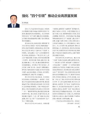 强化“四个引领”推动企业高质量发展