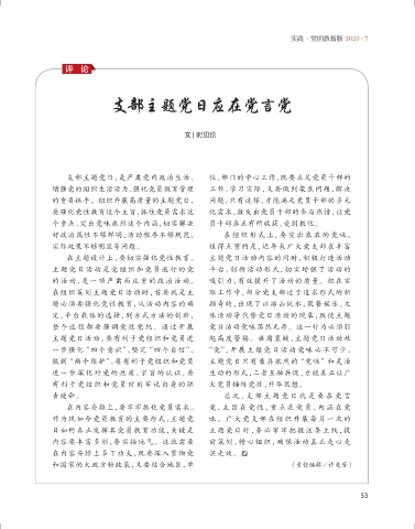 支部主题党日,是严肃党内政治生活、 位、部门的中心工作,既要立足党员干部的
