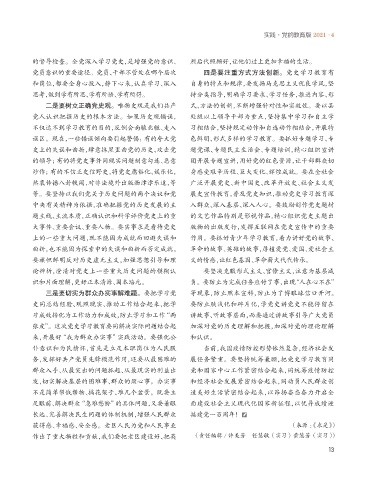 二是要树立正确党史观。唯物史观是我们共产 式、方法的创新,不断增强针对性和实效性。要以县