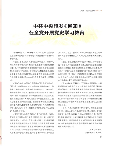 《通知》指出,2021 年是中国共产党成立 100 周年。 《通知》指出,开展党史学习教育,要深入学习领会习