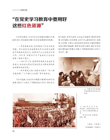 团审议时,特别提到内蒙古的红色资源和党史故事。 理、学史增信、学史崇德、学史力行,做到学党史、悟思
