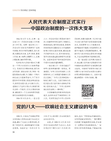 毛泽东向大会致开幕词《为建 个现代化目标的最初概括。 开,标志着人民代表大会制度作为新