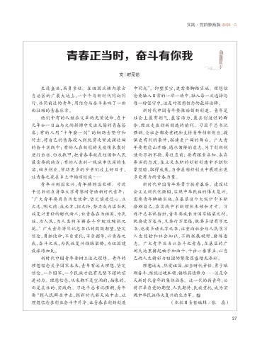 “广大青年要肩负历史使命,坚定前进信心,立 需要青年脚踏实地,在基层这个大熔炉中不断