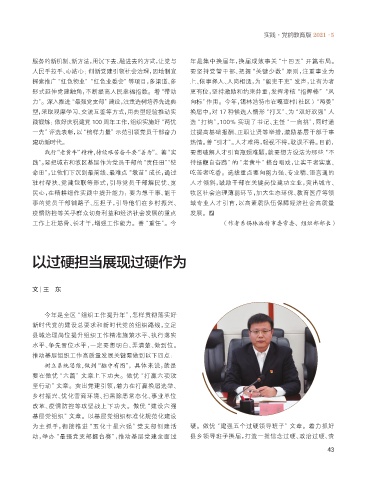 践锻炼;做好庆祝建党 100 周年工作,组织实施好“两优 选“打钩”,100% 实现了书记、主任“一肩挑”,同时通