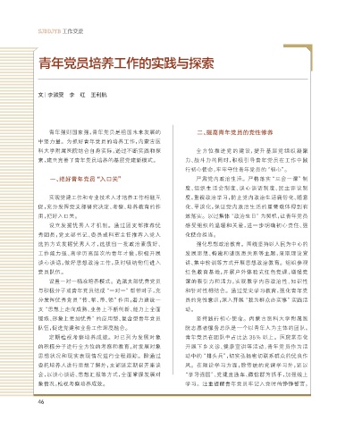 索,建立完善了青年党员培养的基层党建新模式。 力、战斗力的同时,积极引导青年党员在工作中践