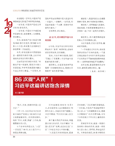 一词出现了 86 次,以人民为中心 民”二字在总书记心中的分量。 与人民心连心、同呼吸、共命运的历