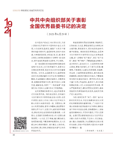 在中国共产党成立 100 周年之际,为深 希望受表彰的同志珍惜荣誉、再接再厉,