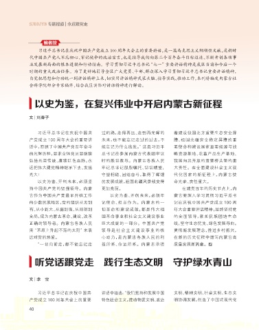 的少数民族地区,党的组织从无到 记使命、担当作为。内蒙古的一 记在庆祝中国共产党成立 100 周