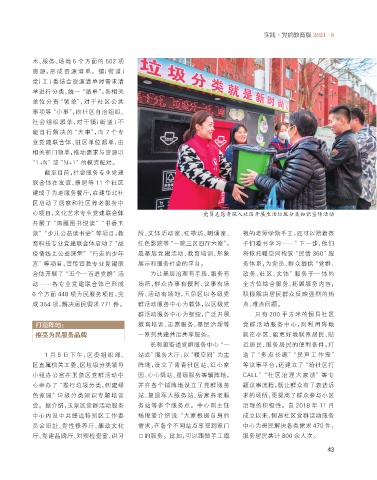 色家园”垃圾分类知识专题培训 站、复退军人服务站、居家养老服 求的场所,更提高了群众参与小区