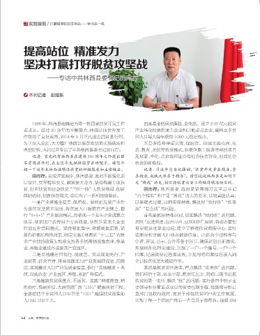 典型经验,本刊记者专访了中共林西县委书记田向存。 态、教育、光伏等扶贫模式,积极争取上级各类帮扶项目