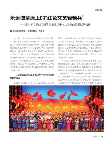 2017 年 11 月 21 日,在乌兰牧骑建立 60 周年之际, 周年、乌兰牧骑诞生 60 周年之际,习近平总书记专门给