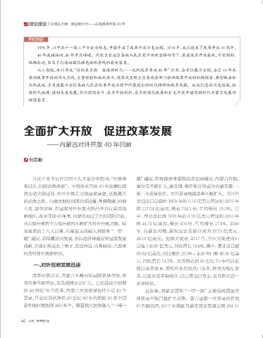 来进步,封闭必然落后”。中国改革开放 40 年波澜壮阔 蒙贸易不断扩大,蒙古国、俄罗斯分别成为内蒙古第一、