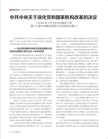 和国家机构改革问题,作出如下决定。 适应。主要是:一些领域党的机构设置和职能配置还不