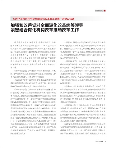 中央全面深化改革委员会第一次会议并发表重要讲 措。要坚持优化协同高效,推动机构、职能、人员全面融