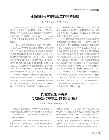 想工作的职责使命。                                          新的境界,为新时代宣传思想工作提供了战略指引和行