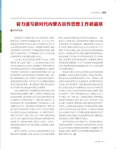 同思想基础。 新,奋力谱写新时代内蒙古宣传思想工作新篇章,为建
