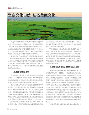 合,逐步形成了今天以内蒙古自治区为主要聚集地、以蒙 (二)弘扬草原文化是坚定文化自信的具体体现。中