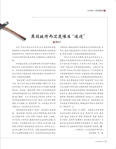 莫因政绩而过度催生“痕迹”。雁过留声,抓铁留 绝不能把“痕迹”当“政绩”。在党政工作责任落