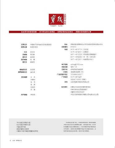 主管主办 中国共产党内蒙古自治区委员会 地址 呼和浩特市赛罕区大学东街新桥靠巷实践杂志社