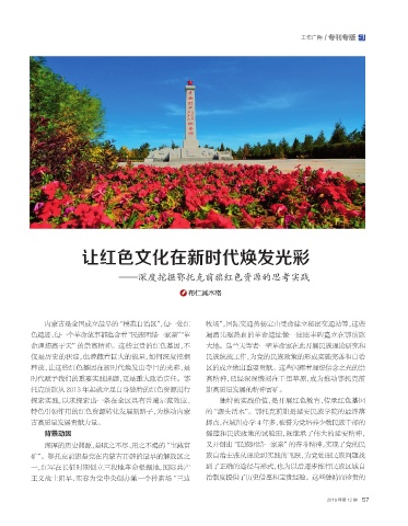 流行的盛乳革囊等生活用品上,或摔跤服等服饰上。在 郭勒盟正蓝旗,靠近陕西的乌兰察布市,与陕西相邻的 色遗迹、每一个革命故事都蕴含着“民族团结一家亲”“革 遍洒先驱热血的革命遗址像一座座丰碑矗立在鄂前旗