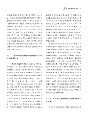 审时度势、综合研判、果断决策,迅速将疫情防控工 党政军民学、东西南北中,党是领导一切的。 战的重要法宝 作精神,做到了局部利益服从整体利益、眼前利益