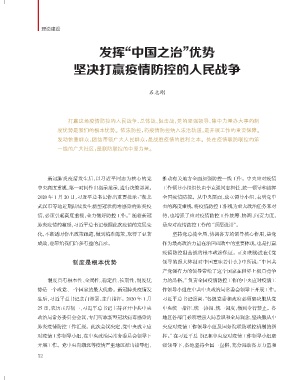 打赢这场疫情防控的人民战争、总体战、阻击战,党的坚强领导、集中力量办大事的制 得到有效遏制的根本制度优势。各地调动医疗力量攻 法律来惩戒和约束,以实现规范、科学、合理地治理疫情