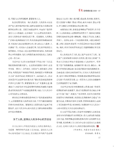 表团审议时提出的“人民至上、生命至上,保护人民生命 展的决定性力量。坚持以人民为中心的马克思主义群 它还是一种科学的马克思主义方法论。坚持以人民为 (作者单位:内蒙古自治区党校)