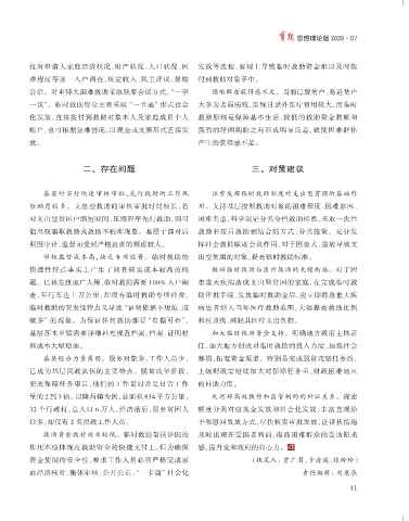 贫人口脱贫和防止边缘人口、不稳定脱贫人口返贫 二是加快审核审批流程。对情况紧急、需立即采取 口多,却仅有 2 名民政工作人员。 予和慰问发放方式,尽快核实审批发放,让帮扶措施