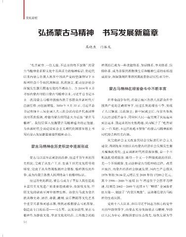 启新征程、再创新辉煌。2020 年 5 月 22 日,习近平总                     国共产党的正确领导下,经过长期的艰苦斗争,实现                                                经过千百年来的历史积淀与一代又一代人的实                            蒙古马精神的力量不仅是内蒙古各族人民团结奋斗、