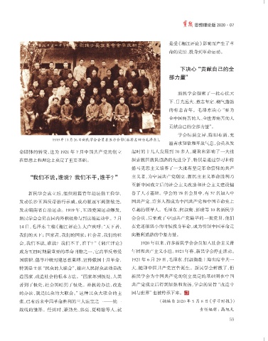想指引下,新民学会实施“向外发展”与“国内研究”  确、方法得当、和俄一致的党”的主张,表示“见地极  会,我们不说,谁说?我们不干,谁干?”《湘江评论》  1920 年以来,许多新民学会会员加入社会主义青