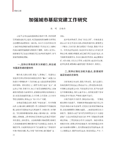 代城市基层党建创新发展提供了遵循。如何立足实际, 力。对机关企事业单位、街道社区以及住宅小区进行多