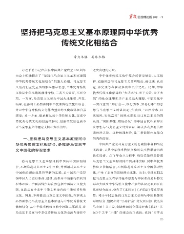 化相结合,从中华优秀传统文化中汲取丰厚滋养,让 马克思主义出发,创造性地转化儒家经典《礼记·礼