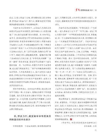 命运、心连心的奋斗历程,深切体悟各民族守望相 奋斗、共同繁荣发展,才有中华民族的伟大复兴。学
