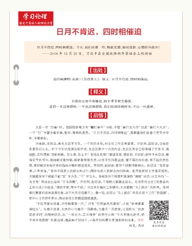 意指一天过得很快,一年也过得很快,我们应该珍惜时光,不让一日虚度。