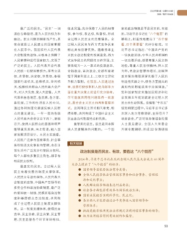 关、检察机关都由人民代表大会产 举、投票行使权利和人民内部各方 真知灼见都能运用于治国理政。”